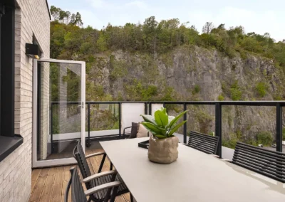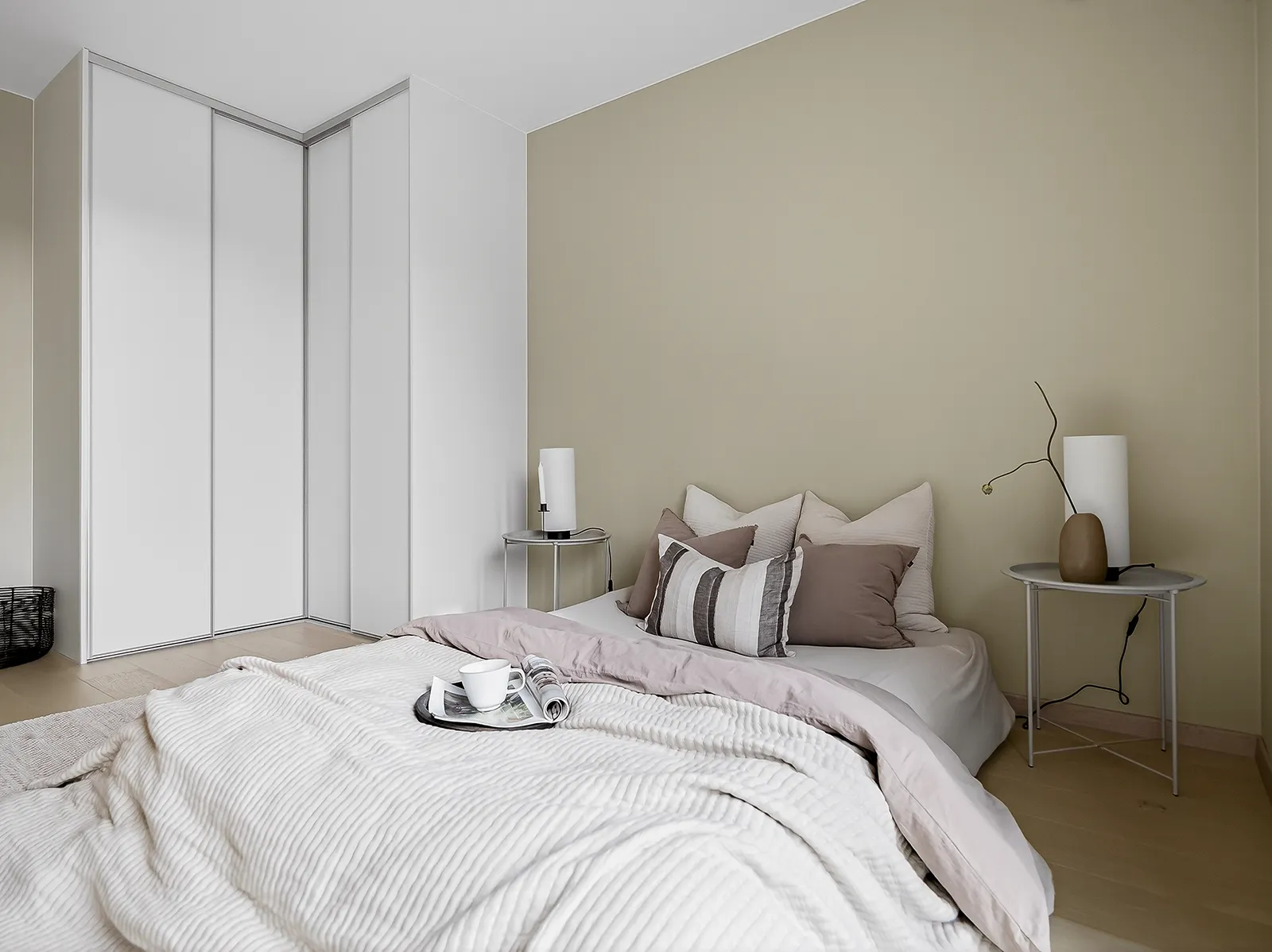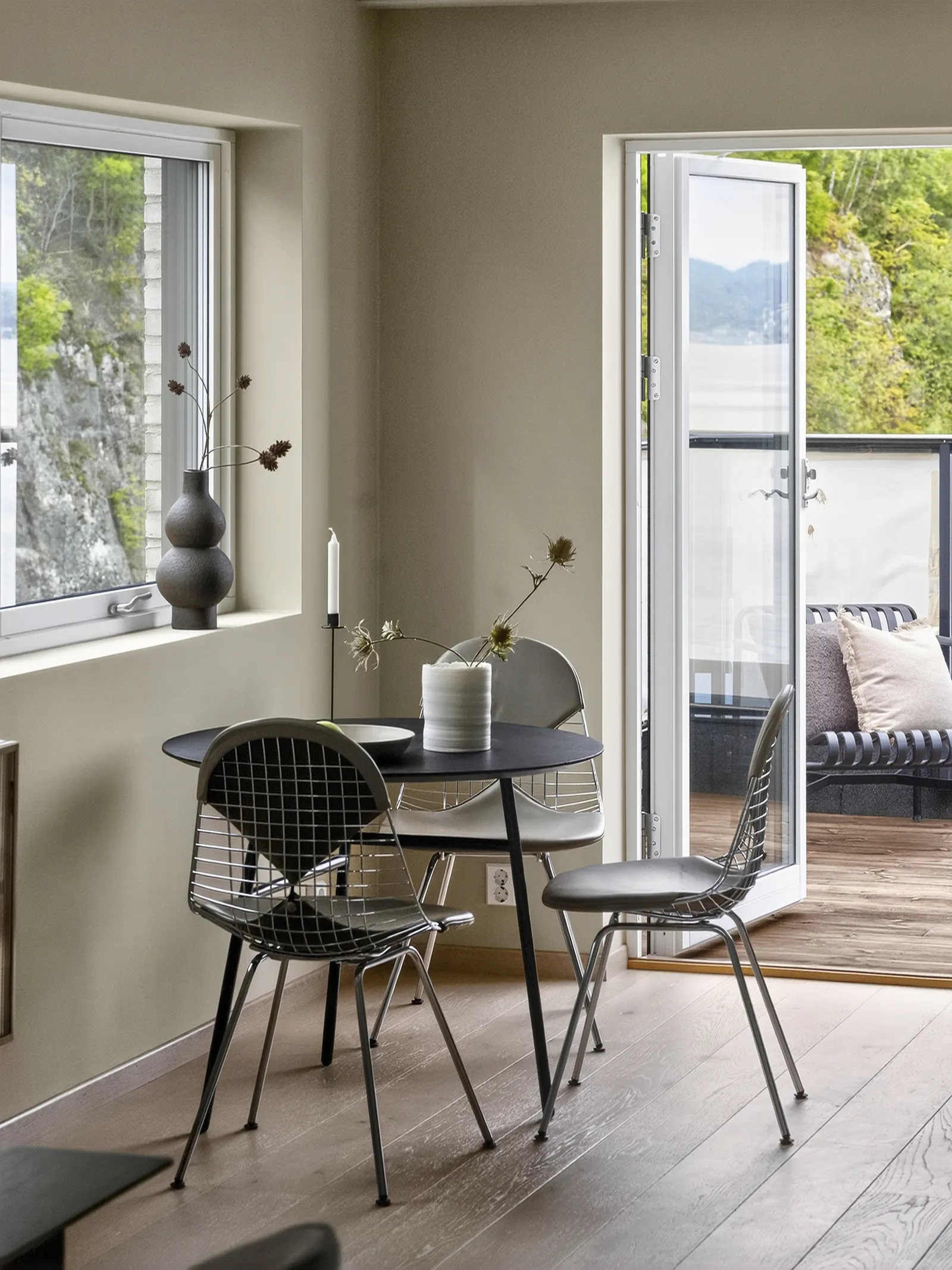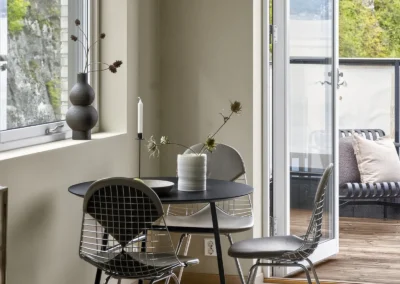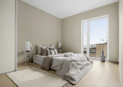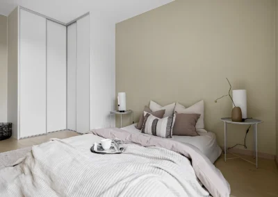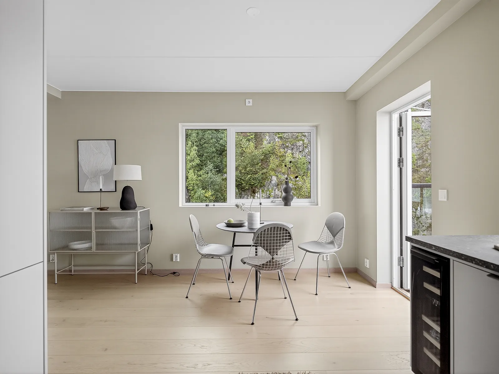 Kjøkkenet har godt med skap- og benkeplass, integrerte hvitevarer og vinskap – for å ikke å snakke om nydelig sjøutsikt. Leiligheten har to gode soverom og bad. Det romslige hovedsoverommet leveres med skyvedørsgarderobe.