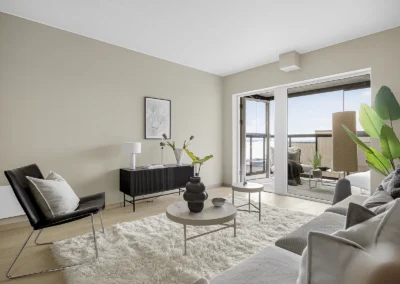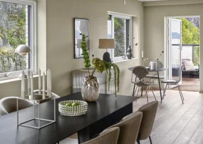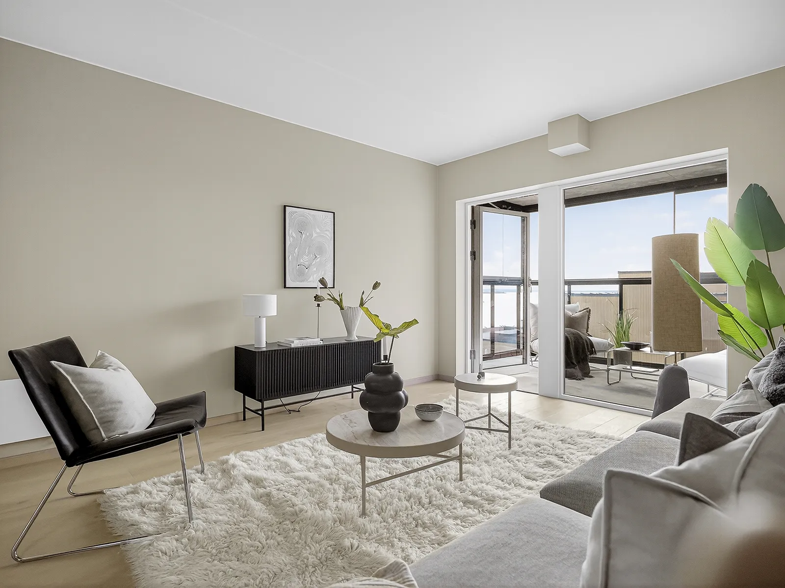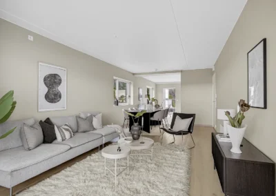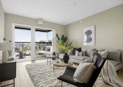 Denne fantastiske topppleiligheten har en lys og åpen stue- og kjøkkenløsning. Den store stuen er gjennomgående med gode møbleringsmuligheter og utgang til både innglasset balkong og takterrasse. Her får du både for- og ettermiddagssol.